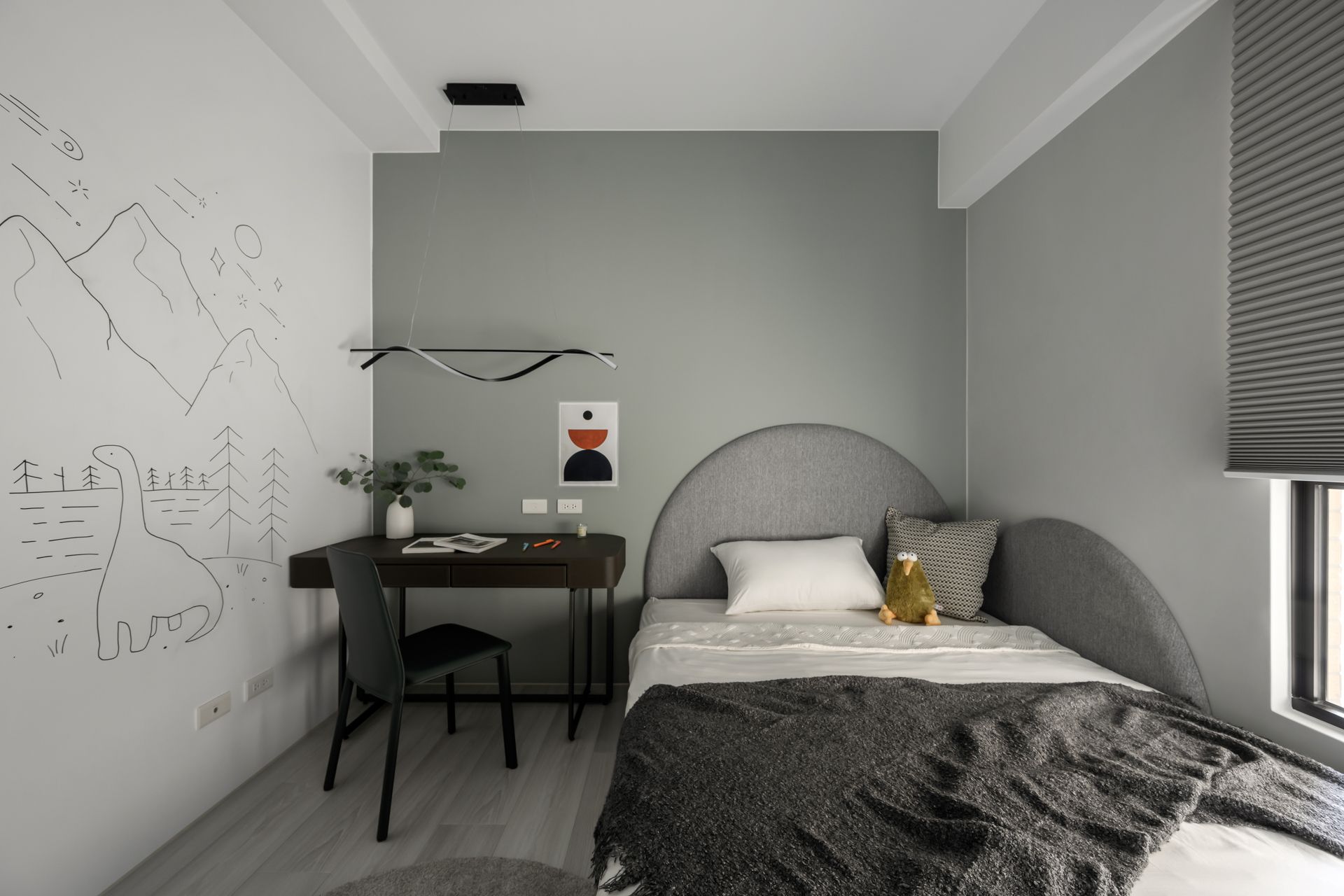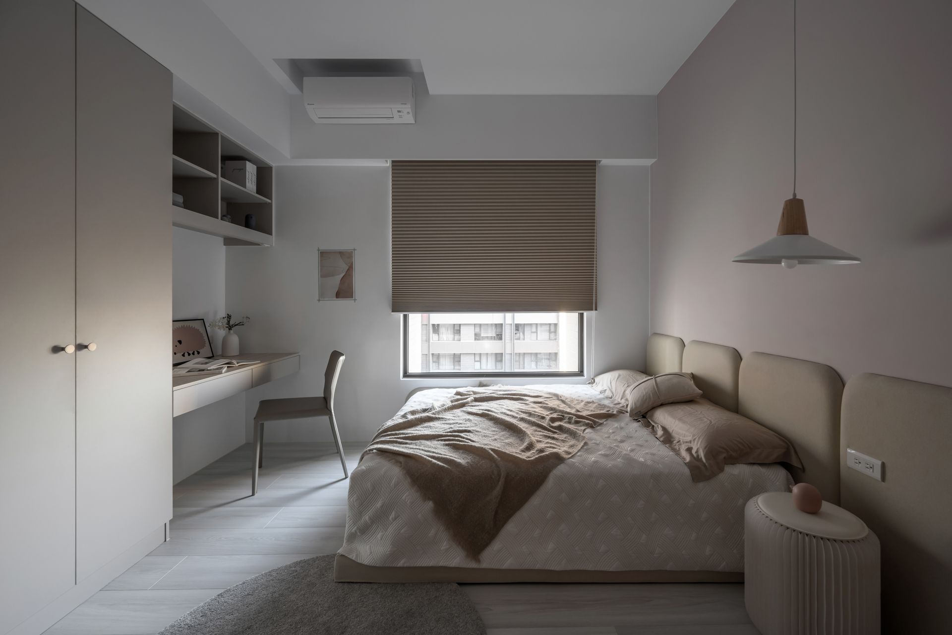 女孩房則是小業主喜愛的藕粉色,配上活動小家具,以及兒童版的掛飾尺寸與高度,在浪漫之餘不失童趣沒有過多的裝修和木作,方便弟弟長大後可以依據自己的喜好妝點房間。