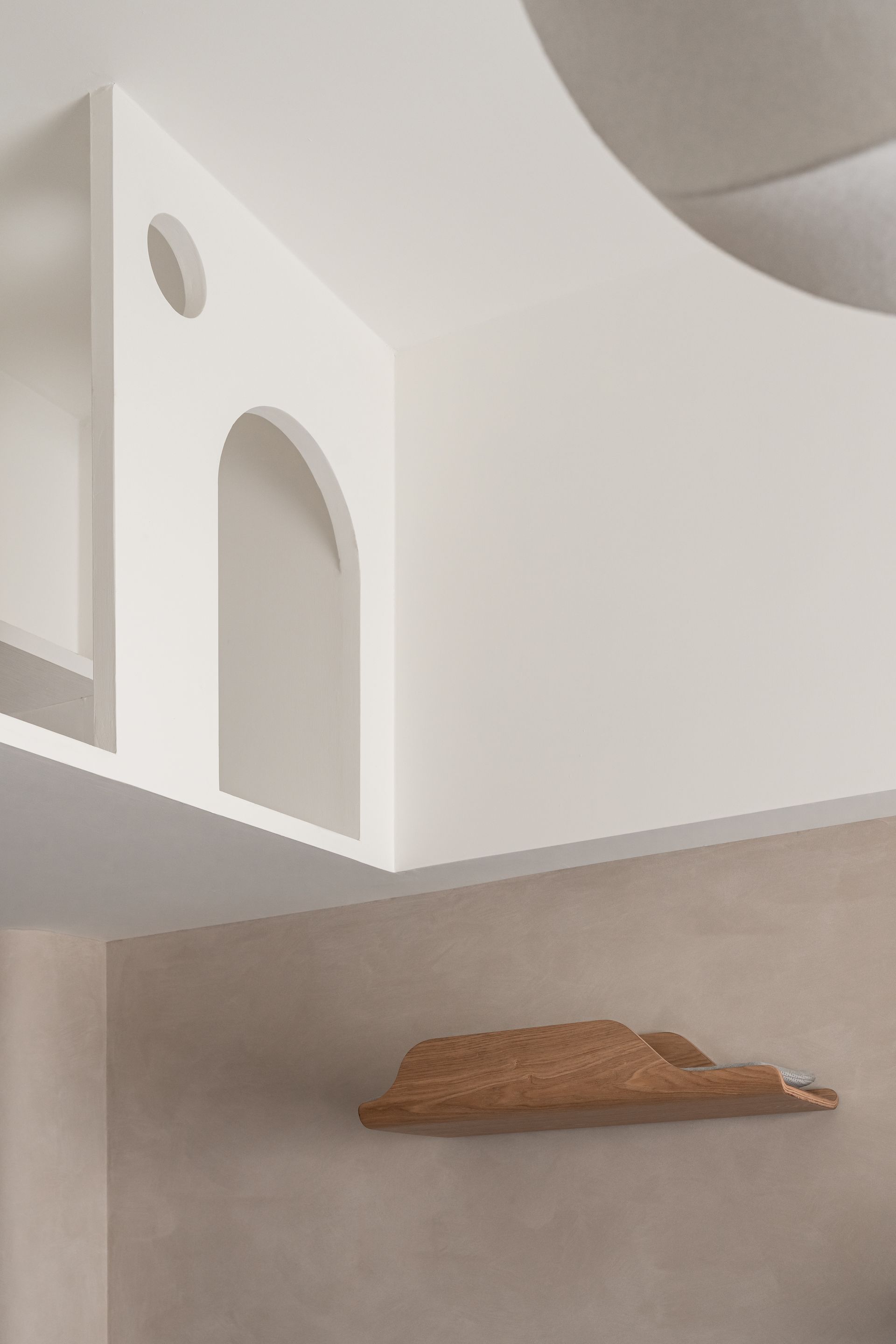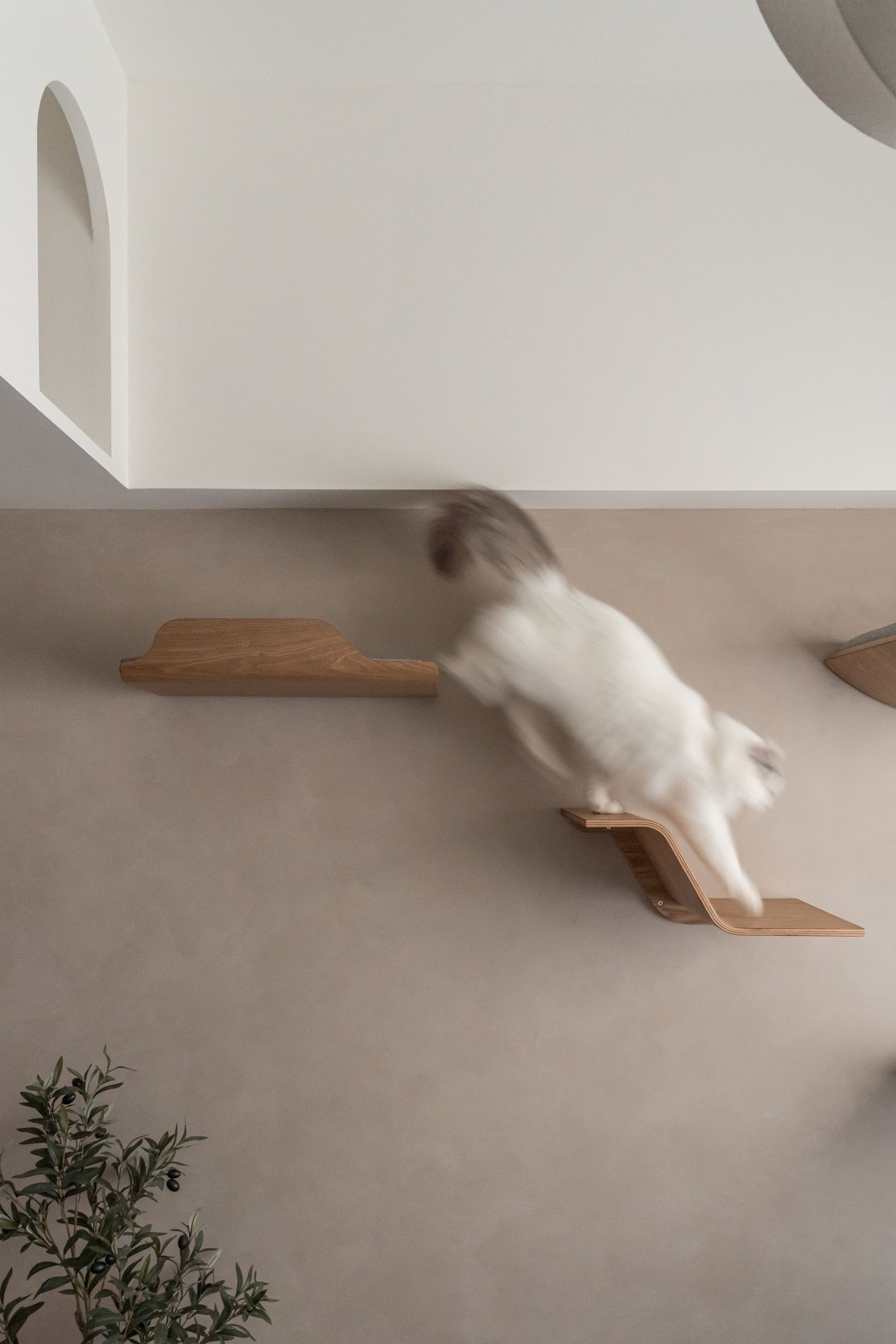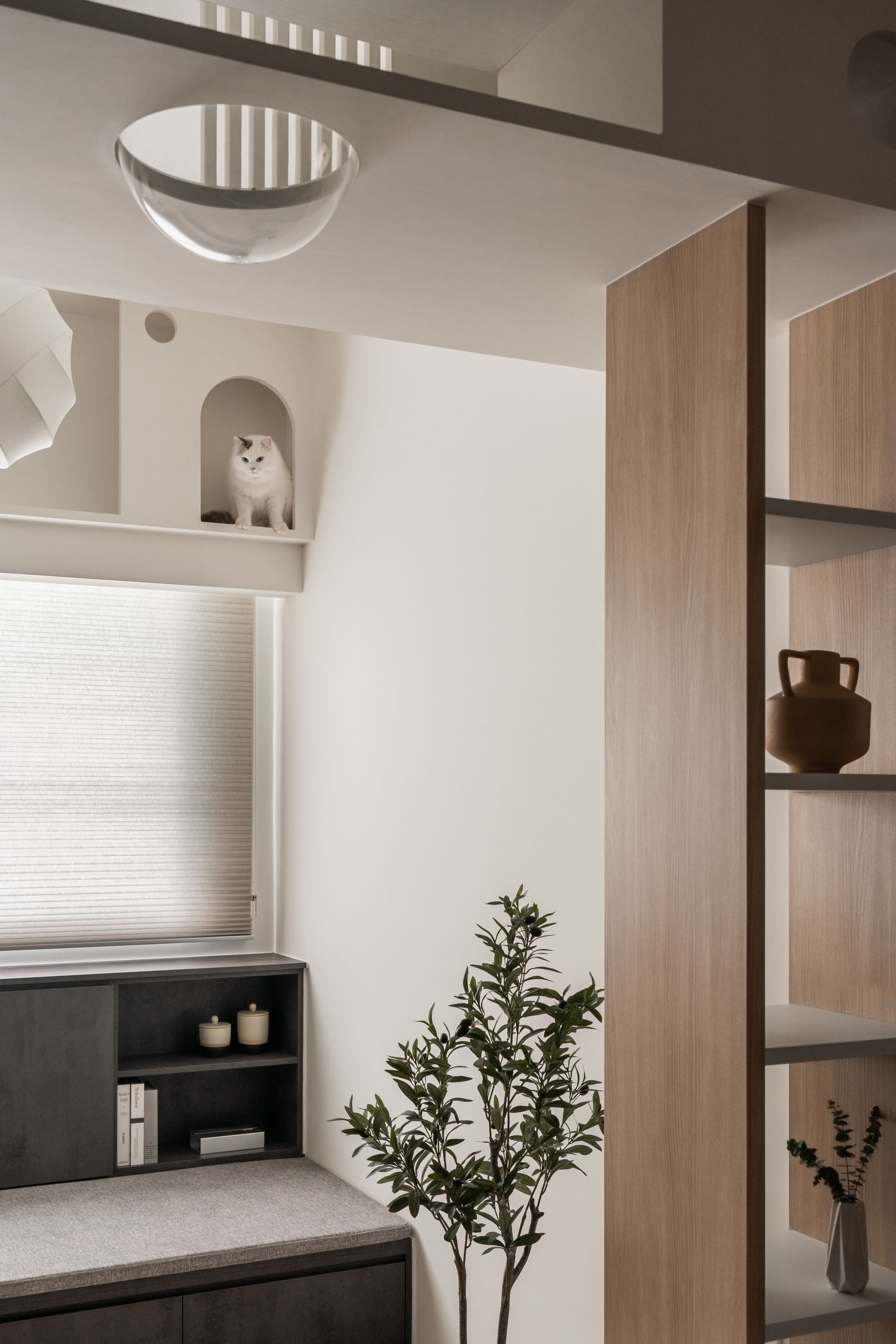 不到50平方米的空間,專為一位單身女屋主和一隻貓咪量身打造。設計探索了小空間內新的共處可能性,實現貓咪與居住者之間流暢、輕鬆、和諧的平衡。總體規劃充分利用了高挑的天花板,並沿著垂直方向延伸,以放大活動空間。